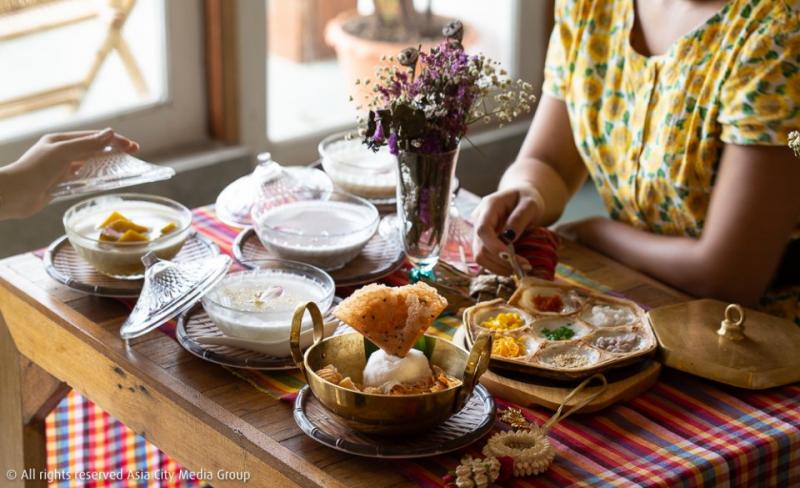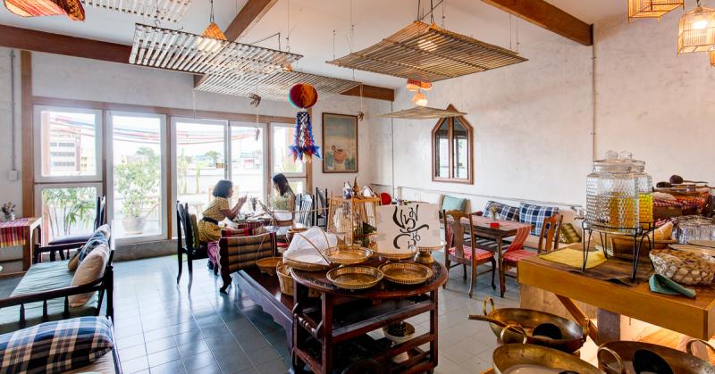 หรือถ้าอยากทาน ขนมไทยที่ไม่ใช่แบบน้ำกระทิ ที่ร้านเขาก็มี ทองม้วนกรอบไอศกรีมกะทิสด (120 บาท) และ ขนมครกชาววังท็อปปิ้ง 7 อย่าง (95 บาท) ไว้ให้ลองสั่งทานด้วยเหมือนกัน ตัวร้านเป็นคาเฟ่ขนมไทยลับ ๆ ที่ซ่อนตัวอยู่บนตึกเล็ก ๆ อายุกว่า 30 ปีในย่านบางลำพู ภายในร้านอบอวลไปด้วยกลิ่นหอมอ่อน ๆ ไปทั่วทั้งร้าน