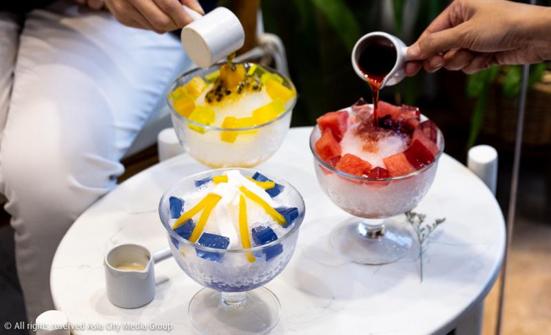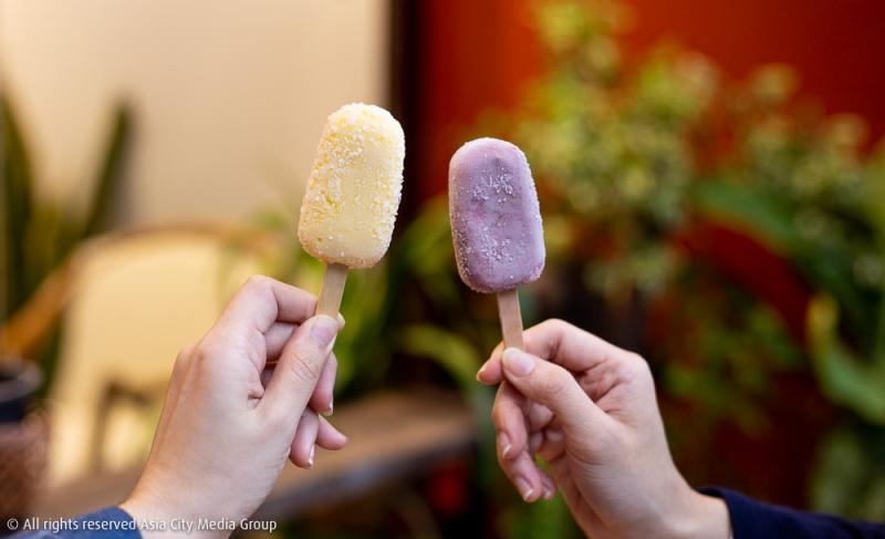 นอกจากนี้ทางร้านยังมีเมนูเย็น ๆ คลายร้อนที่ยังหยิบเอาวัตถุดิบจากธรรมชาติมาเหมือนเดิม อย่างน้ำแข็งไสถ้วยโต แบ่งกันกิน 2 คนได้สบาย ๆ (129 บาท) นี้ก็มีให้เลือกหลายรสชาติ ทั้งรสกระเจี๊ยบกุหลาบ ที่ใส่แตงโม เยลลี่กุหลาบ รองก้นด้วยพุดดิ้งเต้าหู้กะทิ ราดซอสกระเจี๊ยบกุหลาบชื่นใจ หรือจะเป็นรสมะม่วงเสาวรส ที่โปะหยน้ามาด้วยมะม่วงสุกและเยลลี่เกํกฮวย ราดด้วยซอสเสาวรสเปรี้ยวหวาน และรสมะพร้าวอัญชัน ที่ใส่ท็อปปิ้งมะพร้าวกับขนุนแน่น ๆ เพิ่มด้วยเยลลี่อัญชัน ราดด้วยซอสกะทิน้ำตาลโตนด ก็เลือกความชื่นใจในแบบที่ตัวเองชอบได้เลย ส่วนใครอยากหาอะไรเย็น ๆ กินระหว่างกลับบ้านไปด้วย ทางร้านก็มีไอศกรีมแท่ง (แท่งละ 39 บาท 3 แท่ง 100 บาท) รสชาติแปลกใหม่ ที่ทางร้านคิดสูตรขึ้นมาเองทั้งหมด เช่นรสกระเจี๊ยบ-กุหลาบ รสเต้าหู้-ยูสุ รสมัลเบอร์รี่-เก๋ากี้ รสมะตูม-น้ำผึ้ง รสมะม่วงน้ำดอกไม้ และรสมะพร้าวซอร์เบต์ด้วย