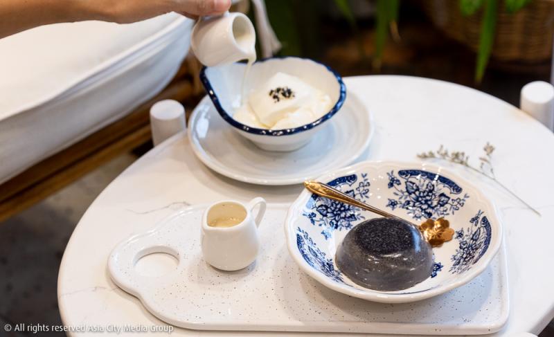 ส่วนสายรักสุขภาพที่ชอบกินเต้าหู้ก็มี งาดำน้ำเต้าหู้ (69 บาท) ราดนมสดหอมมัน กับพุดดิ้งเต้าหู้ Blancmange (69 บาท) เนื้อเหนียวหนึบมาก ๆ ที่ราดน้ำเต้าหู้เพิ่มความสดชื่นลงไปด้วย ก็อร่อยชื่นใจดีทีเดียวแหละ