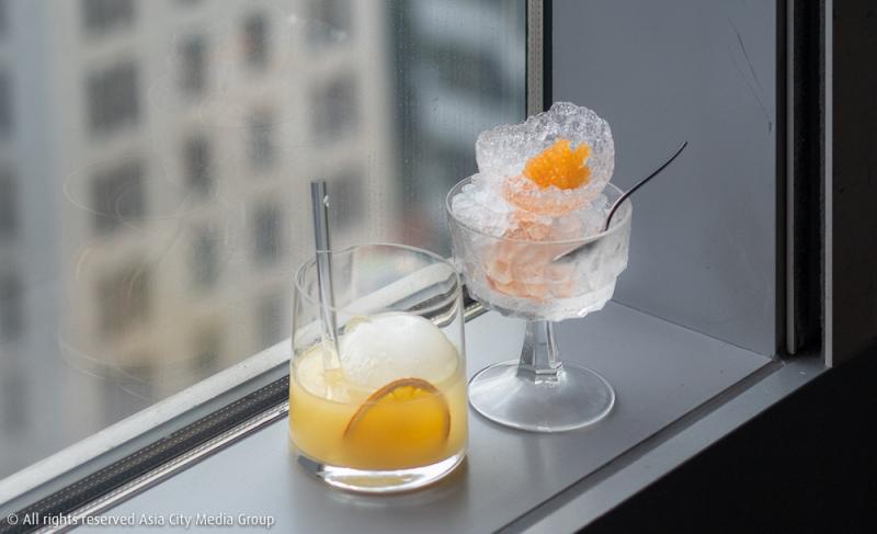 เราขอเลือกค็อกเทลกนึ่งในสามแก้วมาลองอย่าง Dycc To Taste (380 บาท) ชื่อ Dycc ก็มาจากส่วนประกอบทั้ง 4 ตัวที่ผสมกันในค็อกเทลแก้วนี้อย่าง Drambuie, Canadian Club 6 Years, Cardamom Green Seed และ Yuzu Juice นั่นเอง ความเก๋คือเขาจะเสิร์ฟมาพร้อมกับ Orange Sphere แยกกัน วิธีการคือให้ดื่มค็อกเทล แล้วตักสเปียร์ส้มใส่ปากตามไปด้วย เป็นกิมมิกที่ทำให้การดื่มค็อกเทลแก้วนี้สนุกขึ้น