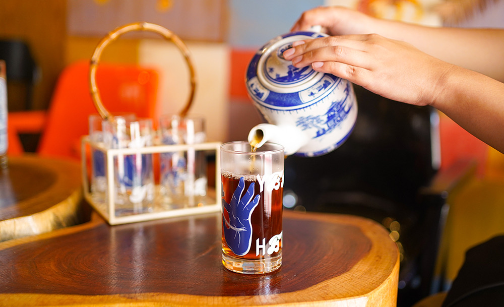 สำหรับเบลนด์ที่เราเลือกชิมเป็นหลักของวันนั้นคือเบลนด์สำหรับเมนูชานม เพราะเป็นเมนูโปรดและคอมฟอร์ตเมนูที่สั่งมาตลอดชีวิต แต่ไม่รู้เลยว่าจะมีตัวเลือกมากมายขนาดนี้ โดยใบชาของที่นี้เป็นชาที่ทางทีมของร้านได้เดินทางไปเสาะหามาจากทั่วประเทศไทย แล้วนำมาทดลองจับคู่เบลนด์ตามสูตรของทางร้านเอง ส่วนนมที่ใช้สำหรับชงชานมของที่นี่ก็เป็นสูตรที่สั่งทำขึ้นมาเอง เพื่อลดความคาวและเพิ่มความหอมมัน เรียกได้ว่าสเปเชียลตั้งแต่ใบชายันนมที่ใช้เลยล่ะ!