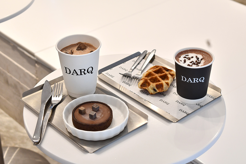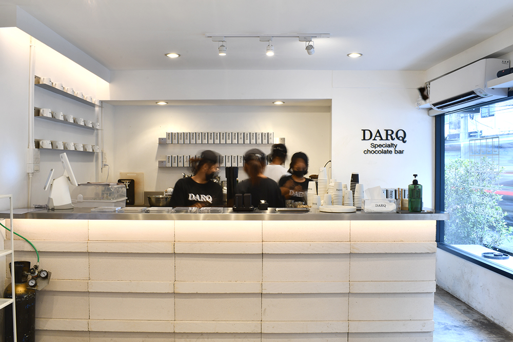 นั่นจึงเป็นที่มาของความมหัศจรรย์ทางรสชาติที่จะเกิดขึ้นสำหรับชาวโกโก้เลิฟเวอร์ตัวจริง ที่จะได้เทสต์รสชาติต่าง ๆ ของโกโก้ไทยจากหลากหลายแหล่งปลูก ที่ร้าน Darq รวบรวมไว้มากกว่า 12 แหล่ง และจับมานำเสนอในรูปแบบสุดโมเดิร์นให้คนรุ่นใหม่อย่างเราเข้าใจง่าย พร้อมสเปซร้านคลีน ๆ ในโทนสีโมโนโครมที่น่าจะถูกจริตคาเฟ่ฮอปเปอร์สายมินิมอลและสายคอนเทมฯ เขาแหละ