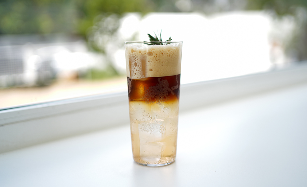 ถ้าอยากได้ความสดชื่นในวันอันร้อนระอุ และอยากนั่งพักใจแบบช้า ๆ เนิบ ๆ เราแนะนำให้สั่ง Hour Glass (200 บาท) เมนูกาแฟที่เพิ่มลูกเล่นด้วยการเสิร์ฟช็อตกาแฟแยกชั้นกับน้ำเกรปฟรุตและโซดา เห็นแล้วนึกถึงนาฬิกาทรายตามชื่อเมนู แก้วนี้จะคนให้เข้ากันแล้วดื่ม หรือจะค่อย ๆ จิบช้า ๆ รอให้ทั้งสองชั้นผสมกันก็ได้