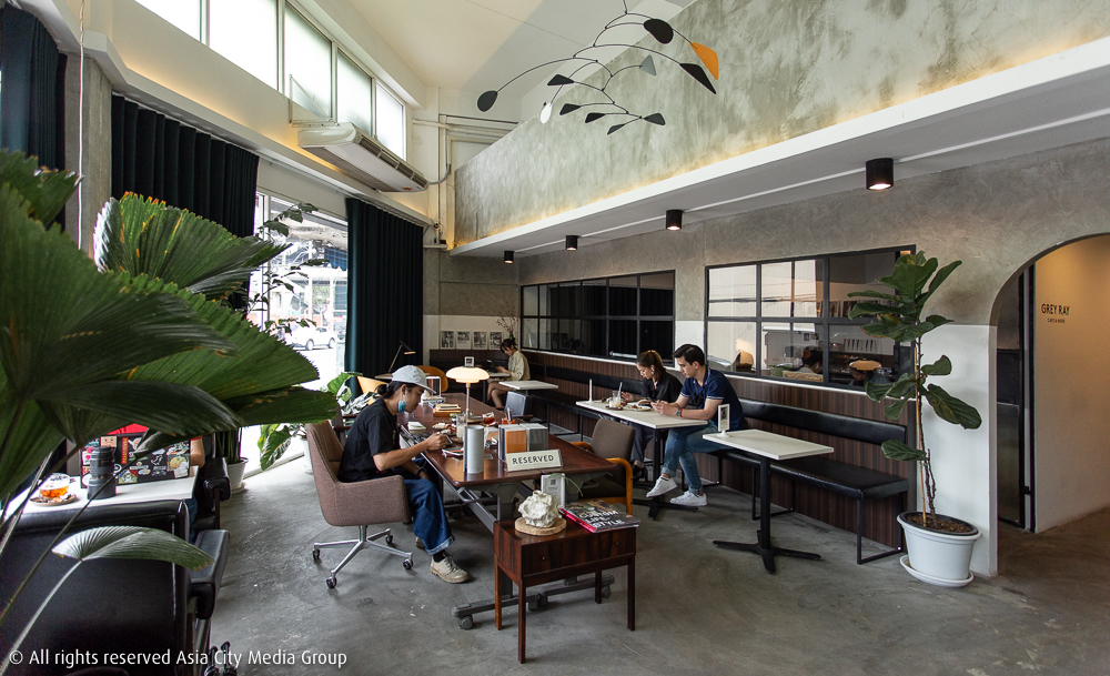 Grey Ray Cafe & More คือพิกัดที่ถ้าได้ไปสักครั้งหนึ่งจะเข้าใจว่ามันเป็นมากกว่าคาเฟ่ สมกับที่เขาต่อท้ายด้วย & More จริง ๆ นั่นแหละ ถึงจะเป็นคนที่ไม่รู้ที่มาที่ไปของคอนเซปต์ร้านนี้มาก่อน แต่เราเชื่อว่าพอได้เปิดประตูเข้าไปแล้วเจอกับโต๊ะกาแฟที่มีอุปกรณ์เครื่องเขียน อย่างพวกปากกา ดินสอ และสมุดโน้ต วางเรียงรายให้ได้หยิบมาขีดเขียน รวมถึงแบ่งห้องอีกฝั่งเพื่ออุทิศให้กับการวางไอเทมเครื่องเขียนจากแบรนด์ Grey Ray ที่เริ่มทำมาตั้งแต่ปี 2011 โดยมีซิกเนเจอร์ไอเทมที่เหล่าดีไซเนอร์ไทยหลายคนติดกันงอมแงมอย่างปลอกดินสอ ยางลบรักษ์โลก ไปจนถึงไอเทมหายากจากคอลเลกชันพิเศษของแบรนด์นี้อย่างสมุดโน้ตและกระเป๋าสตางค์จาก The Darjeeling Hotel Project รวมถึงลิมิเต็ดไอเทมจากคอลเลกชัน Grey Ray x Mamuangchan ที่หาซื้อจากที่อื่นไม่ได้อีกแล้ว คาเฟ่ฮอปเปอร์ทั้งหลายก็จะตกหลุมรักอย่างถอนตัวไม่ขึ้นแน่นอน!