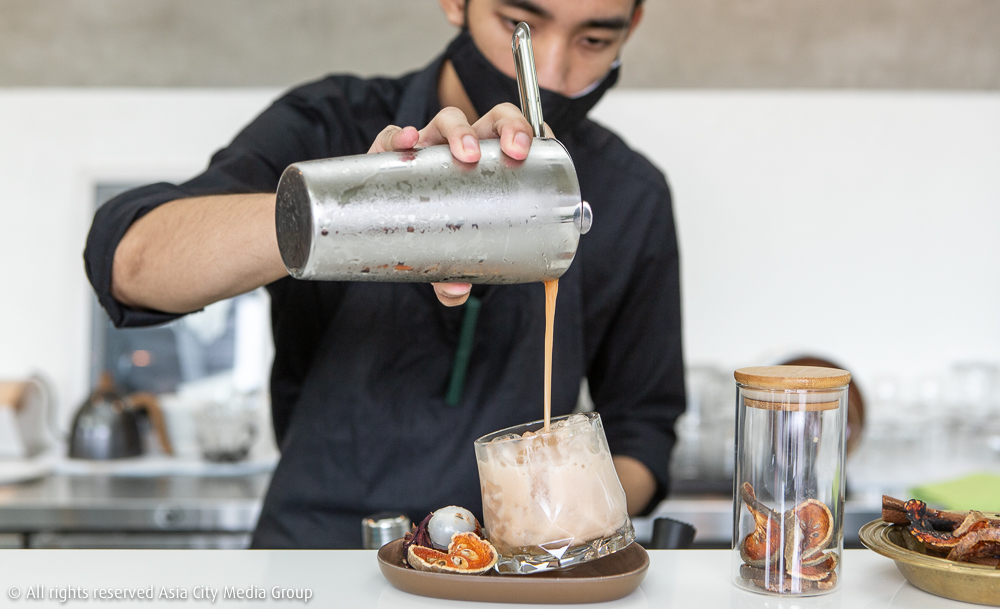 ส่วนใครที่อยากลองอะไรใหม่ ๆ ทุกครั้งที่ไป บาริสต้าหนุ่มคนขยันของร้านนี้เขาก็มักจะทำกาแฟตัวพิเศษออกมาทุกเดือน อย่างรอบนี้ที่เราไปก็มี Summer Rain (220 บาท) เครื่องดื่มรับหน้าฝนจากเบสไซรัปกระเจี๊ยบและโคลด์บริว เสิร์ฟพร้อมลิ้นจี่สดหนึ่งลูกให้กินแกล้มเพลิน ๆ ไปรอบหน้าก็ไม่มีให้ลองชิม ใครไม่อยากพลาดก็อย่าลืมสั่งเมนูประจำเดือนมาลองกันด้วยล่ะ!