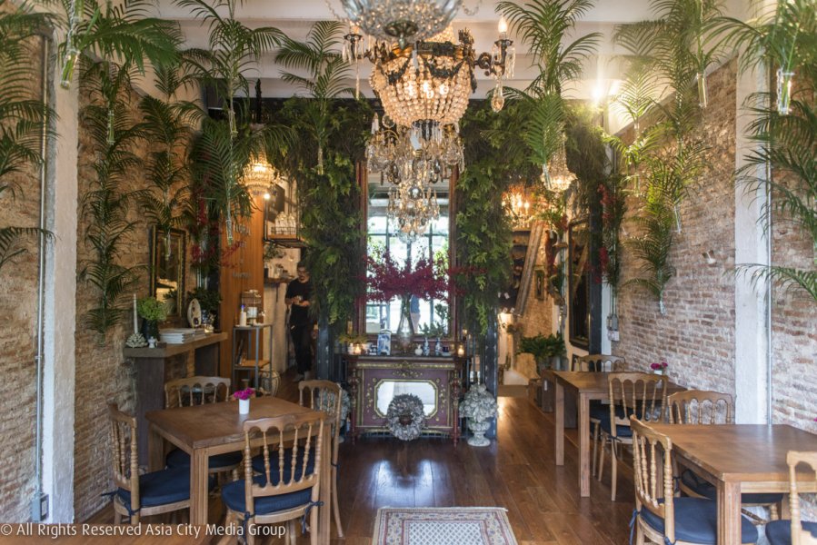 Floral Cafe ซ่อนตัวอยู่บนชั้น 2 ของร้านดอกไม้นภสร ร้านดอกไม้ชื่อดังที่เปิดมานานกว่า 20 ปี หากใครรู้จักร้านดอกไม้แห่งนี้อยู่แล้วก็คงไม่แปลกใจว่าทำไมร้านถึงได้ออกมาสวยงามตระการตา เพราะคุณเอี๋ยว-ภูวนาถ ชุ่มศรีขรินทร์ เจ้าของร้านเป็นคนออกแบบและวางคอนเซ็ปต์เองทั้งหมด ทำให้มุมต่างๆ มีพืชพรรณและดอกไม้เข้าไปเติมแต่งอย่างลงตัว