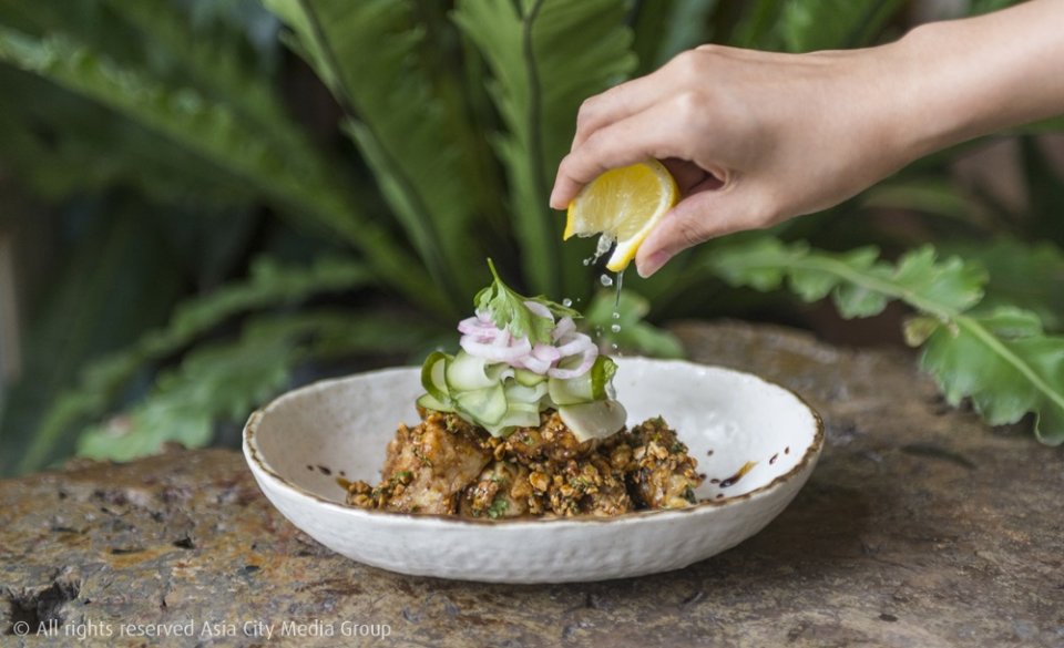 “เหมือนผมจับอาหารสองประเทศมาแต่งงานกัน” เชฟสรุปให้ฟังแบบง่ายๆ เกี่ยวกับการจับอาหารต่างสัญชาติมาผสมกัน และเสิร์ฟจับคู่กับม็อกเทลอร่อยๆ ที่ช่วยเสริมรสกันถึง 4 ตัว ยกตัวอย่างเช่นเมนู Dirty Birds (180 บาท) ที่นำไก่มาทอดกรอบแล้วราดด้วยน้ำซอสหวานโรยด้วยถั่ว เสิร์ฟพร้อมมะนาวที่เพิ่มก็ทำให้รสเปลี่ยนไปอีกแบบ เครื่องดื่ม E-sarn Classic ที่มีส่วนผลมของตะไคร้ ใบมะกรูด และข่า ก็ช่วยส่งกลิ่นสมุนไพรหอมๆ เข้าไปตามหลัง
