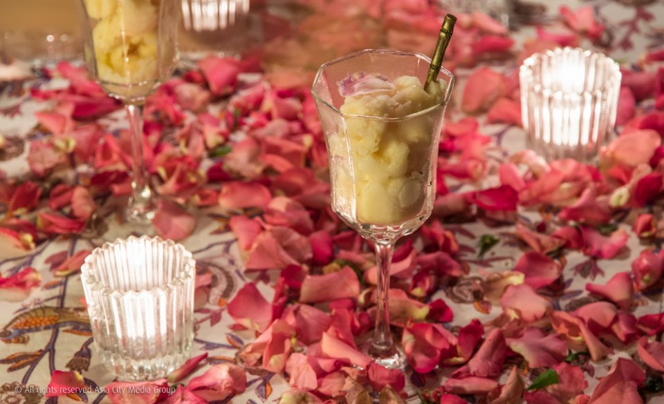 ความเก๋คือมีพักครึ่ง Intermission เหมือนดูละครเวที โดยพี่สกุลจะพาออกไปเดินย่อยชมสวนดอกไม้ยามค่ำคืน ก่อนจะปิดท้ายด้ายของหวานอย่างซอร์เบท์กลีบกุหลาบและชีสเค้กจากญี่ปุ่น ถ้าอยากสัมผัสประสบการณ์ดินเนอร์ดอกไม้ บอกเลยว่าต้องโทรจองก่อนเท่านั้นนะ!