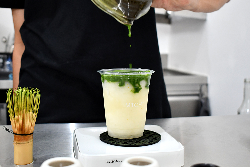 อีกแก้วที่ไม่ควรพลาดคือ MTCH Frappe Yuzu (150 บาท) น้ำส้มยูซุปั่นแสนสดชื่นที่ท็อปด้านบนด้วยมัทฉะเบลนด์พิเศษที่ให้โทนดอกไม้ ทำบาลานซ์ออกมาได้ดีในแบบที่ความเข้มข้นของชาเขียวไม่ถูกเจือจางด้วยน้ำแข็ง