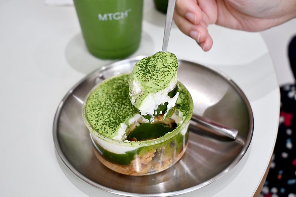 ปิดท้ายด้วยความพิเศษที่มีเฉพาะสาขานี้เท่านั้นกับ MTCH Banoffee (180 บาท) บานอฟฟี่ชาเขียวที่อร่อยที่สุดตั้งแต่เราเคยกินมา ความพิเศษคือรสชาติที่ชัดเจนในทุกเลเยอร์ ตั้งแต่แครกเกอร์ด้านล่างสุด ซอสคาราเมลรสหวานเค็มเข้มข้น เลเยอร์มัทฉะนามะที่ทำมาจากชาเขียวสายพันธุ์ Yamiyabukita จากฟุกุโอกะ กล้วย และตัดด้วยความเบาของวิปครีมที่เลเยอร์ชั้นบนสุด ถือเป็นเมนูขนมหวานที่ขายดีจน Sold Out แทบจะทันทีที่เปิดร้าน!