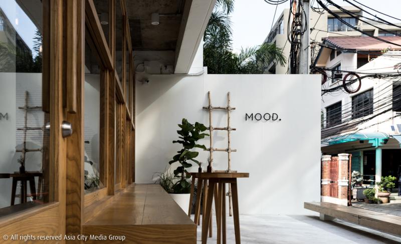 ต้นไม้ใหญ่หน้าร้านเป็นโจทย์หลักที่คุณวู้ดดี้เลือกจะเก็บไว้เพื่อเพิ่มร่มเงาและความร่มรื่น ตัวร้านเลยถูกออกแบบมาให้โอบรับต้นไม้ต้นใหญ่อย่างพอดิบพอดี พร้อมเพิ่มโซนเอาต์ดอร์หน้าร้านให้ชาวคาเฟ่ฮ็อปเปอร์ได้ถ่ายรูปกันแบบรัว ๆ สไตล์สาวแสงธรรมชาติ ส่วนด้านในถูกตัดความขาวด้วยเฟอร์นิเจอร์ไม้สีอ่อน บาร์กาแฟที่ฝั่งซ้ายของตัวร้าน และครัวที่ด้านหลัง
