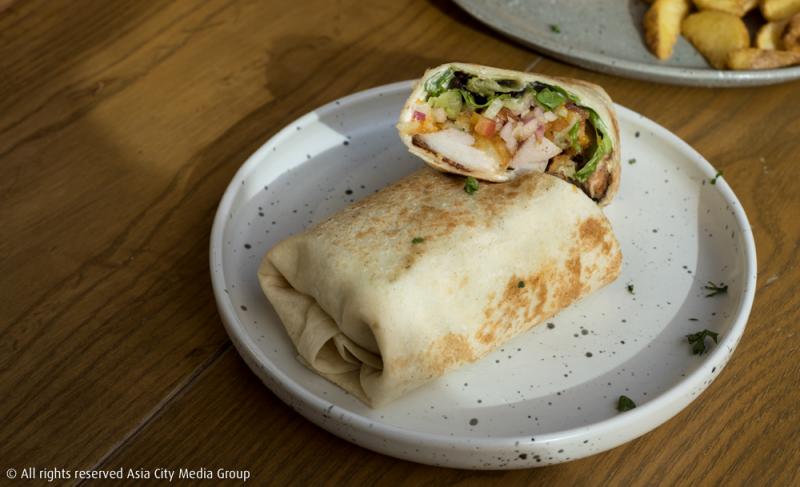 เมนูอาหารที่นี่มาในพอร์ชั่นที่สั่งกินจานเดียวก็อิ่มแปล้ หรือจะแชร์กันมีความเต็มโต๊ะถ่ายรูปสวย อาทิ Chicken Wrap (230 บาท) จานนี้ที่ชูรสด้วยน่องไก่บาร์บีคิวกลิ่นปาปริก้า ห่อด้วยแผ่นแป้งตอติญ่าเบา ๆ แถมด้วยแฮชบราวน์มาเพิ่มความอิ่ม