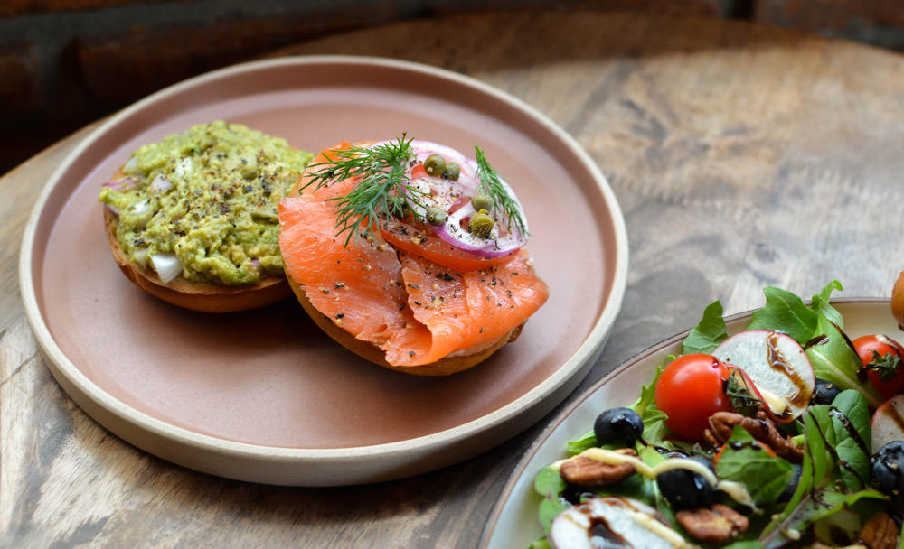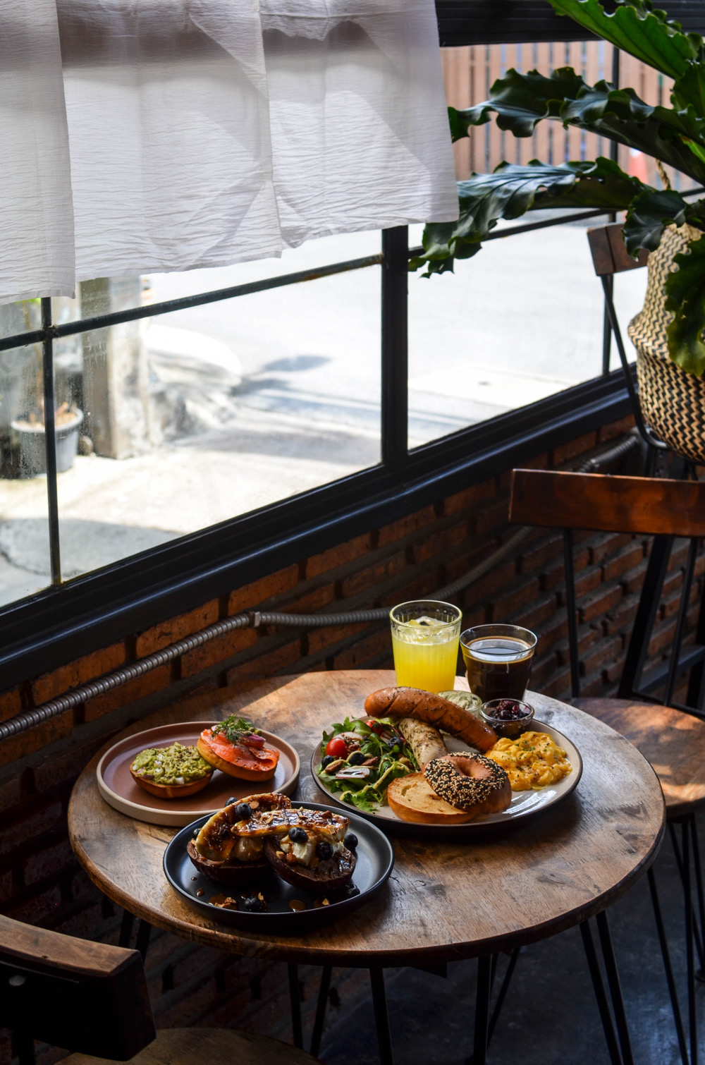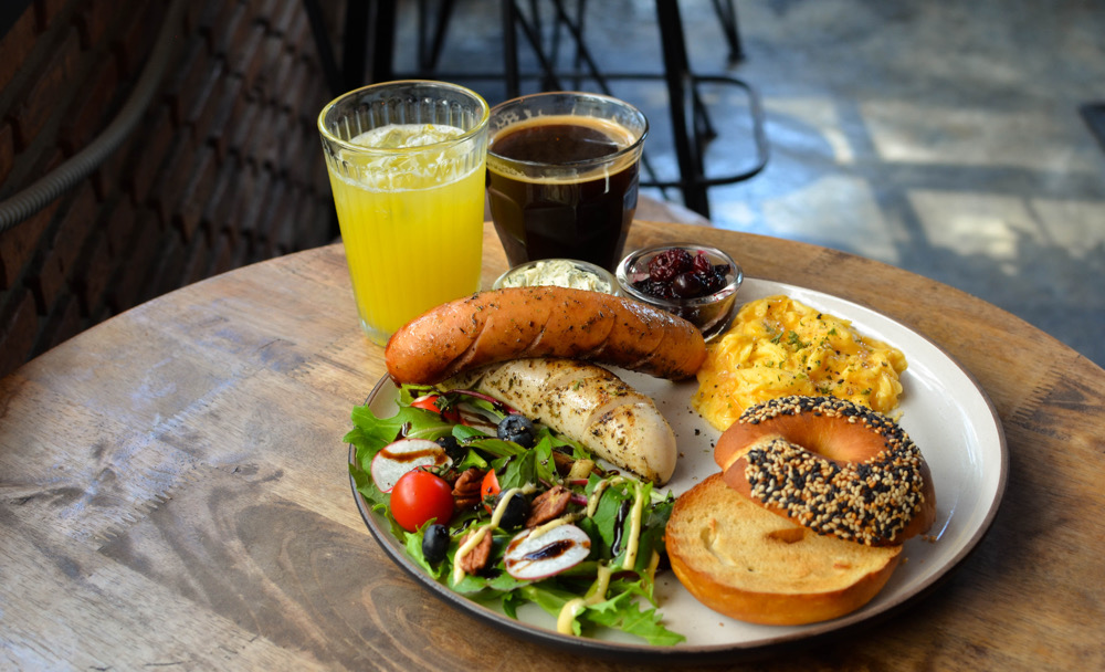 แต่ถ้าคิดว่าเซตมื้อเช้าแบบจัดหนักอาจจะอิ่มเกินไป ทางร้านก็มีเมนูอาหารเช้าเบา ๆ ดีต่อใจให้เลือกลองกันด้วย ตัวอย่างเช่น Guacamole & Lox Bagel จานนี้ที่เขานำเบเกิลอบใหม่ ๆ มาผ่าครึ่งแล้วโปะอะโวคาโดที่เติมรสชาติด้วยหอมแดงและเพสโต้รสจัดจ้านแบบเม็กซิกัน ก่อนท็อปด้วยแซลมอนรมควันชิ้นโต