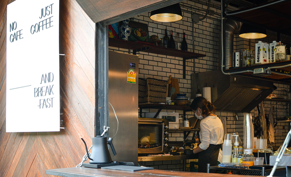 อย่างที่เราบอกไปว่าเราได้พบกับร้านนี้ในช่วงที่เราต้องเวิร์กฟรอมโฮม แต่จากการพูดคุยกับทางร้านจึงได้รู้ว่า No Cafe Just Coffee and Breakfast ก็มีจุดเริ่มต้นมาจากการที่เจ้าของร้านทั้งสองต้องทำงานจากที่บ้านเช่นกัน ซึ่งการมีเวลาในยามเช้ามากขึ้นทำให้ทั้งคู่ตัดสินใจลองนำความสนใจที่แตกต่างกันมาเปิดเป็นร้านเดลิเวอรี่ร่วมกัน โดยความสนใจที่ว่านั้นก็คือความหลงใหลในศาสตร์ของกาแฟ และการทดลองคิดค้นสูตรเบเกิลในแบบของตัวเองนั่นเอง
