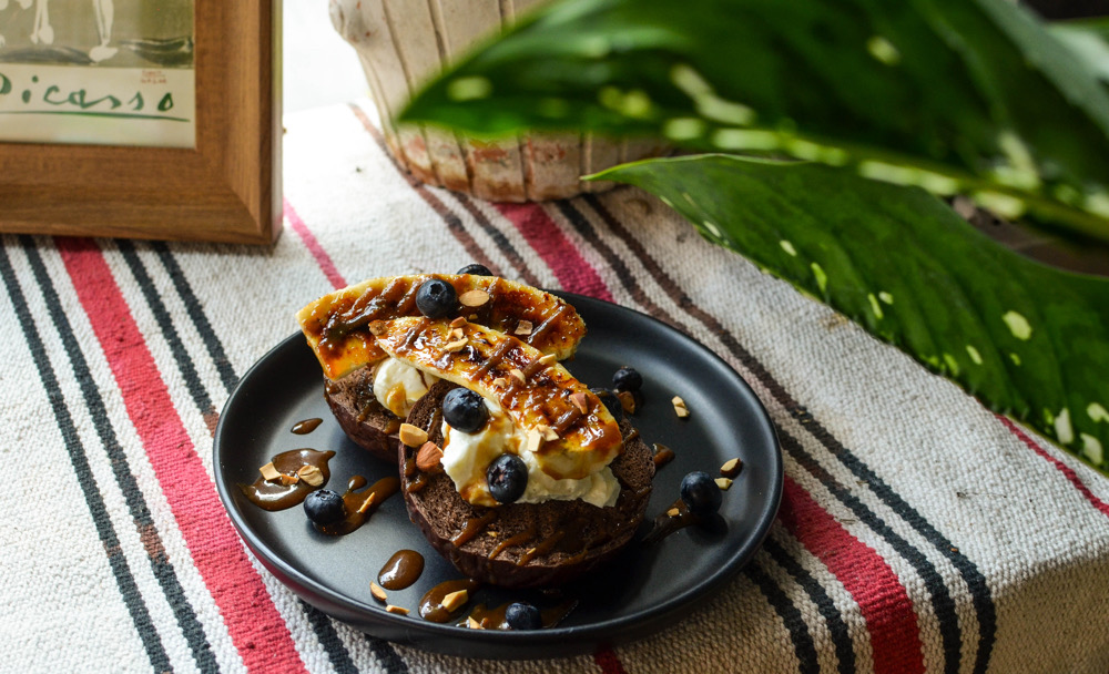 สำหรับคนรักความหวาน ทางร้านก็มีเมนูที่หยิบเอาเบเกิลมาดัดแปลงเป็นเมนูขนมหวานด้วย ที่เราติดใจสุด ๆ ก็คือ Chocolate Banana & Almond ที่เสิร์ฟเบเกิลดาร์กช็อกโกแลตนุ่มฟูกับครีมและซอสบัตเตอร์สกอตช์ที่ทางร้านทำเอง เสิร์ฟคู่กับกล้วยเผาน้ำตาล เป็นรสชาติที่เข้ากันที่สุด