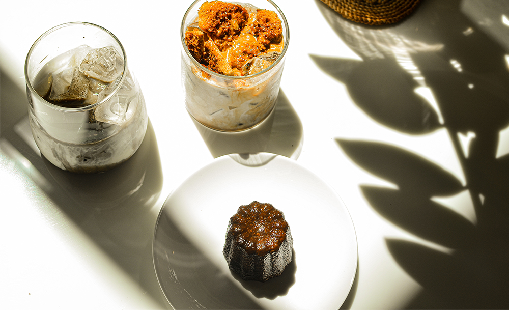 ส่วนเมนูขนมของร้าน วันนี้เราไปทันขนมกาเนเล่ของเขาที่ทางร้านแอบกระซิบมาว่า หมดตั้งแต่ก่อนเที่ยงเป็นประจำ ซึ่งแม้ว่าปัจจุบันเมนูนี้จะเป็นเมนูที่เห็นได้แทบทุกร้านกาแฟ แต่กาเนเล่ของที่นี่ก็ตรงใจเราที่ไม่หวานบาดคอ ส่วนตัวคัสตาร์ดด้านในก็เข้มข้น มัน หวานบาง ๆ ทานได้เพลิน ๆ