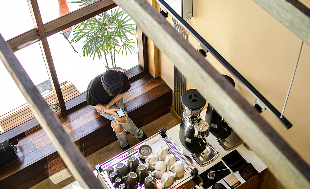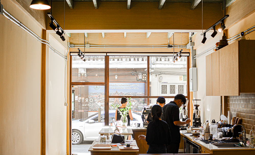 แต่หากลองขยับออกมาสักนิด เดินข้ามถนนมายังบริเวณที่เรียกว่า ท่าเตียน เดินเข้าตรอกซอกซอยมาสักนิด เราก็จะพบว่า ในพื้นที่ซึ่งในอดีตเคยเป็นหับการขนส่งสินค้าทางน้ำที่คึกคักที่สุดของพระนคร กลับมีตึกแถว 3 ชั้น เล็ก ๆ ซ่อนอยู่ ที่แค่ผลักประตูเข้าไป เราก็จะพบกับบรรยากาศของความผ่อนคลายที่เชื้อเชิญให้เรานั่งลงพักใจที่ว้าวุ่นจากความจอแจและไอร้อนด้านนอก แล้วปลอบประโลมตัวเองด้วยกาแฟดี ๆ สักแก้ว