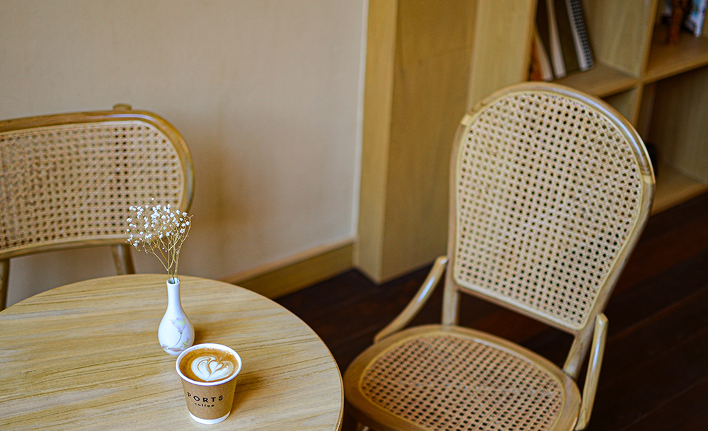 Ports Cafe คือพื้นที่ที่ว่ามานั้นอันเกิดจากการที่ คุณพล ภัคพล วิเศษผลิตผล แปลงตึกแถวของครอบครัวที่ในอดีตเคยเป็นโกดังเก็บสินค้า ให้กลายเป็นพื้นที่นั่งพักใจของผู้หลงใหลในกลิ่นอายเมืองเก่า แต่แสวงหาบรรยากาศของความสงบผ่อนคลายและการปลอบประโลมจากกาแฟดี ๆ สักแก้ว โดยความตั้งใจนั้นก็ถ่ายทอดออกมาเป็นการรีโนเวตตึกแถวเก่าแก่แห่งนี้ด้วยการเติมความเรียบง่ายสไตล์มินิมอลยุคใหม่ลงไป แต่ยังคงความงดงามของสถาปัตยกรรมตึกเก่าเอาไว้เพื่อให้เห็นร่องรอยของอดีตก่อนที่จะมาเป็นร้านกาแฟ