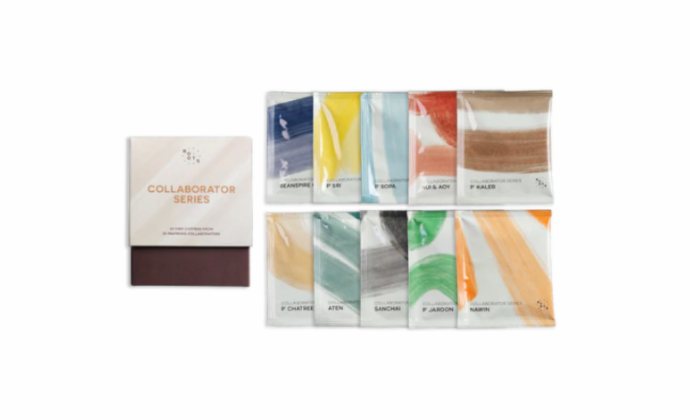 พันธมิตรตัวท็อปของ Roots จากทั้งเชียงราย เชียงใหม่ และน่าน ทำให้ซีรีส์คอลแลบอเรเตอร์นี้ออกมาเป็นกาแฟ 10 มู้ดแอนด์โทน คือ Beanspire Coffee, P'Sri, P'Sopa, Nui & Boy, P'Kaleb, P'Chatree, Sanchai, Aten, P'Jaroon, Nawin มีครบทั้งโทนนัตตี้และฟรุตตี้ เหมาะเหลือเกินสำหรับคนไม่ชอบความจำเจ และร่างกายต้องได้รับกาแฟที่มีคุณภาพในทุก ๆ วัน
