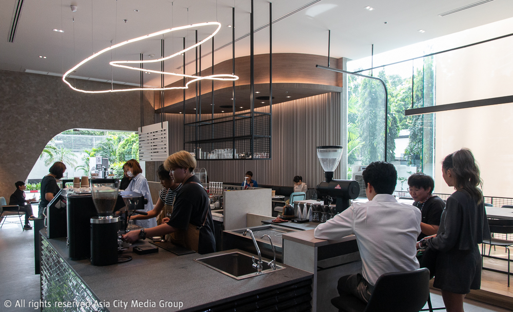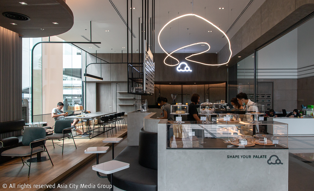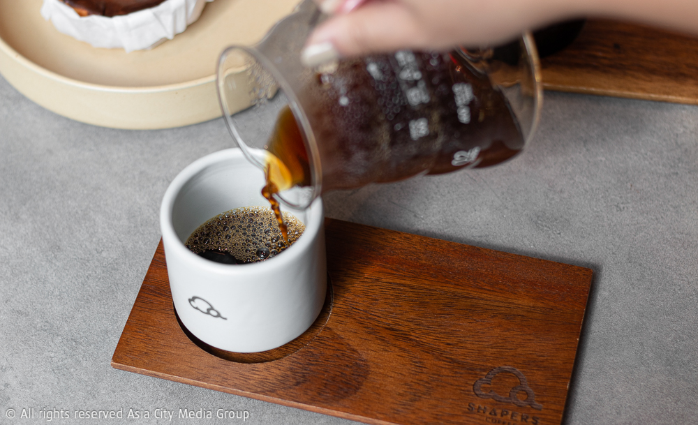 เราขอเล่าความเท่ของ Shapers จากพาร์ตการตกแต่งกันก่อน ความเจ๋งของที่นี่คือการเน้นไปที่ความโปร่งของสเปซด้วยเพดานสูงที่ถูกกำหนดไว้ด้วยโครงสร้างชั้นล่างของอาคารออฟฟิศใจกลางเมือง ใช้โทนสีเทาคลีน ๆ ติดกลิ่นมาสคิวลีนนิด ๆ มีการออกแบบให้รับแสงภายนอกเข้ามาในตัวร้านทั้งช่วงเช้าและช่วงบ่ายได้อย่างไม่อึดอัด (และที่สำคัญคือไม่ร้อน) รวมถึงการแบ่งฟังก์ชันให้แต่ละโต๊ะสามารถเป็นได้โต๊ะทำงานด้วย สำหรับเวิร์กกิงเจเนอเรชันที่คิดมาแล้วว่านั่งสบาย ด้วยการมีจุดเสียบปลั๊กบนโต๊ะให้ชาร์จแบตฯ แล็ปท็อปส่วนตัวได้เลยทันที ซึ่งที่เขาตั้งใจออกแบบในลักษณะนี้ ก็เพื่อเชิญชวนให้เหล่านักสร้างสรรค์ในย่านนี้มานั่งปลดปล่อยไอเดีย และเอ็นจอยกับการทำงานในไวบ์ดี ๆ ที่ชวนให้เกิดความครีเอทีฟนั่นเอง