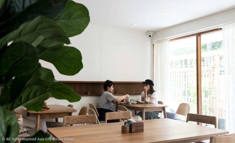 ถึงแม้ว่าจะอยู่ลึกสุดซอยเอกมัย 12 แบบที่บอกพี่วินว่า 'สุดซอยไปเลยพี่!' แต่พอเปิดประตูเข้าไปก็ยังเจอลูกค้าทั้งชาวไทยและต่างประเทศ (โดยเฉพาะสาว ๆ ญี่ปุ่น) มาจับจองที่นั่งในร้านกันอย่างอุ่นหนาฝาคั่งเรียบร้อยแล้ว ตัวบ้านสีขาวหลังใหญ่มีความคล้ายคลึงกับร้านก่อนหน้าอยู่บ้างเล็กน้อย ซึ่งพี่โบเล่าให้เราฟังถึงความตั้งใจในการเลือกบ้านหลังใหม่นี้ให้ยังมีกลิ่นอายโฮมมี่นิด ๆ แบบร้านเก่า เสริมเติมความเป็นกันเองด้วยเก้าอี้โซฟานุ่ม ๆ เคาน์เตอร์บาร์แบบเปิดที่เราสามารถนั่งดูพี่โบว์ชงชากันได้แบบใกล้ชิดบนเก้าอี้สูง แต่ก็ยังมีความเป็นส่วนตัวด้วยรั้วไม้กั้นหน้าบ้านสไตล์ญี่ปุ่น ม่านบาง ๆ ที่พอให้แสงแดดลอดเข้ามาในบางเวลา และมุมโต๊ะนั่งต่างระดับภายในร้านที่ให้ความรู้สึกเป็นส่วนตัวแบบไม่อึดอัดจนเกินไป