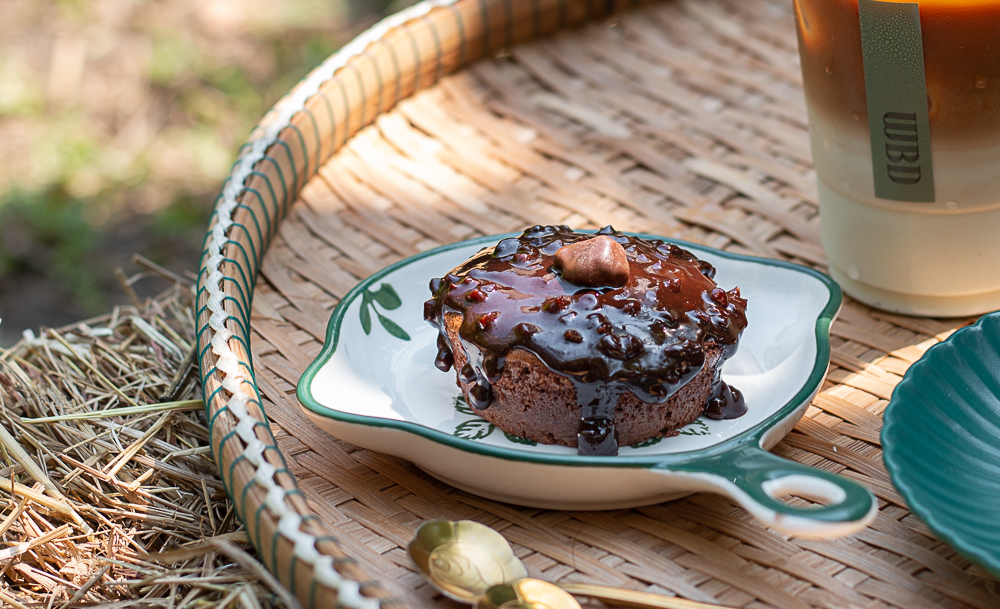 เมนูต่อมาก็คือ Fluffy Moon เค้กช็อกโกแลตเนื้อฟูนุ่มที่พาเราลอยไปถึงดวงจันทร์ ใครที่ชอบเค้กช็อกโกแลตแบบไม่หวานขึ้นตา แต่ก็ไม่ขมจนต้องหลับตาปี๋ น่าจะรักเมนูนี้ได้ไม่ยาก