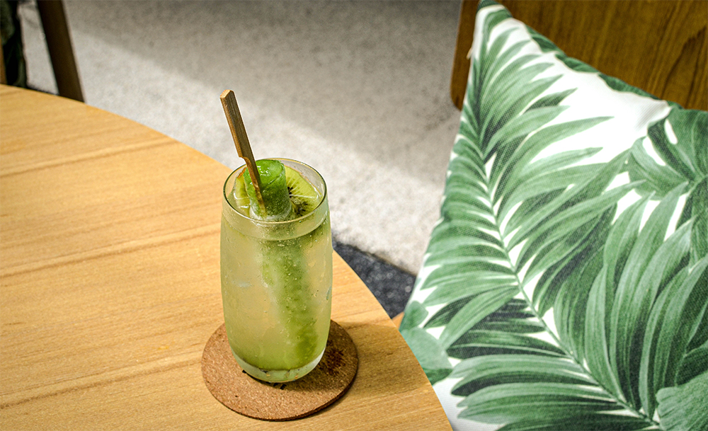 หรือถ้าแค่อยากหลบแดดร้อน ๆ เข้ามารับแดดแบบพอดีในพื้นที่ควบคุมอุณหภูมิให้ใจเย็นลง ทางร้านก็ยังมีเมนูเครื่องดื่มมากมายให้เลือก ไม่ว่าจะเป็น สตรอว์เบอร์รีสมูทตี้ ที่จะสั่งมาจิบคู่กับอาหารมื้อเช้า หรือจะจิบเล่นในตอนบ่ายก็ได้ เช่นเดียวกับ กีวี่โซดา ที่ความเก๋ของเขาอยู่ที่การแอบหยอดกีวี่ป็อปซิเคิลลงมาในแก้วเพื่อเพิ่มความสดชื่น