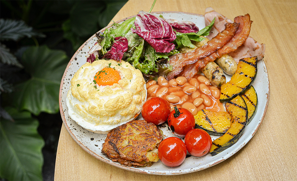 ใครที่ต้องการเติมพลังมื้อเช้าแบบจัดเต็มสักหน่อย อาจจะเริ่มต้นด้วยเมนูเบรกฟาสต์ครบสูตรอย่าง คราวดี้ เอ้กเบเนดิกต์ (420 บาท) ที่ประกอบด้วยสารอาหารจำเป็นสำหรับมื้อเช้าแบบครบถ้วน ไม่ว่าจะเป็นโปรตีนจากไส้กรอกและเบคอน ไปจนถึงวิตามินจากสลัดและมะเขือเทศฉ่ำ ๆ โดยไฮไลต์ของจานนี้ก็อยู่ที่เอ้กเบเนดิกต์ฟูนุ่มที่หั่นลงไปแล้วไข่แดงเยิ้มกำลังดี