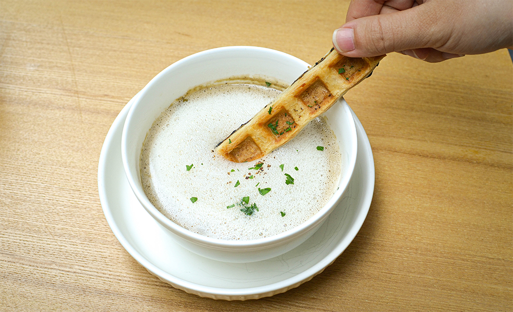 แต่ถ้าตั้งใจมาเปิดมื้อกลางวันที่นี่ เราว่า ทาโก้หมู (290 บาท) ที่เขาให้ไส้ที่เป็นพูลพอร์กเปื่อยนุ่มกับชีสกองโตมาแบบสะใจ ถือเป็นเมนูสำหรับมื้อกลางวันที่อิ่มกำลังพอดี หรือถ้าจะสั่ง ซุปทรัฟเฟิล (250 บาท) ที่เสิร์ฟซุปหอม ๆ ในถ้วยร้อนมาพร้อมกับเบรดสติ๊กให้จุ่มทานคู่กัน ก็ถือเป็นมื้อกลางวันแบบฟูลเซตที่ดีต่อใจสุด ๆ