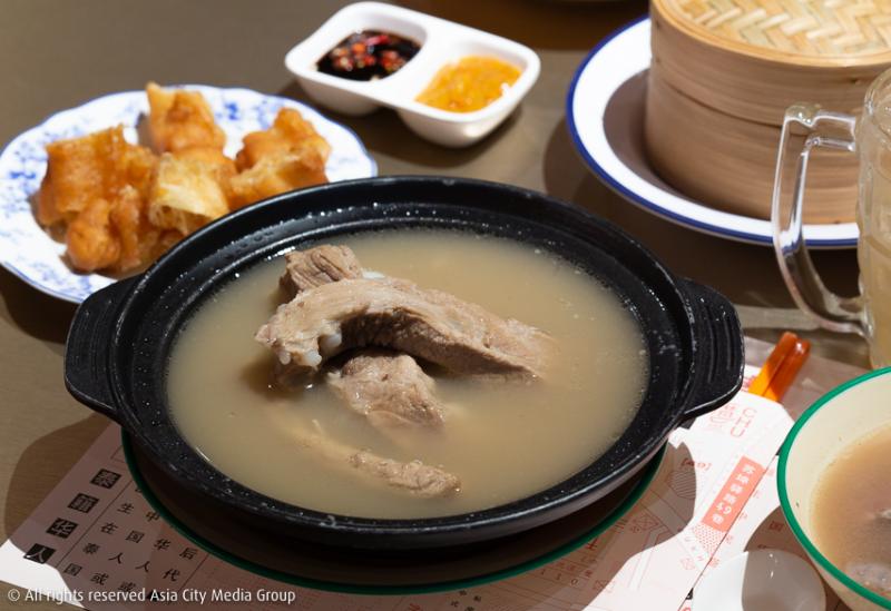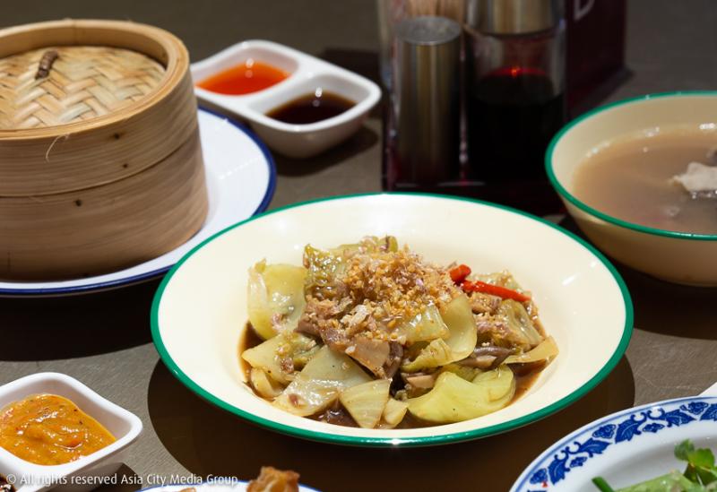 มาในส่วนของอาหารกันบ้าง อาหารจีนขึ้นชื่อที่ทุกคนรู้จักและคุ้นเคยกันอย่างดีอย่าง บักกุ๊ดเต๋ ที่เสิร์ฟคู่กับปาท่องโก๋ (280 บาท) มีรสชาติอร่อย สัมผัสเผ็ดร้อนของพริกไทยเข้ากันดีกับรสชาติซุปกลมกล่อมที่มีกลิ่นหอม ซึ่งเราถือว่านี่คือสำเนาถูกต้องของฉบับต้นตำรับของชาวจีนเอามาก ๆ มีน้ำจิ้มเคียง 2 ชนิด คือซีอิ๊วดำและพริกเหลือง ต่อมาเป็นกระเพาะหมูผัดเกียมไฉ่ (140 บาท) จานนี้ถือได้ว่าเป็นจานที่มีรสชาติพอเหมาะ กำลังดี ตัวเกียมไฉ่มีรสที่ไม่เปรี้ยวและเค็มจนเกินไป และยำไข่เยี่ยวม้า (100 บาท) ของร้านนี้จะพิเศษขึ้นมาหน่อยตรงที่ไข่เยี่ยวม้าจะมีสีไม่เข้มมาก ซึ่งแตกต่างจากร้านอื่น แถมไม่มีกลิ่นคาวของตัวไข่เลย มีรสชาติเปรี้ยวอ่อน ๆ ตัดเลี่ยนได้เป็นอย่างดี