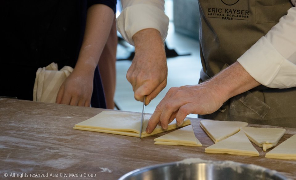 ซึ่งอีริค เคย์เซอร์ก็ตั้งใจมาเวิร์กชอปทำขนมปังฝรั่งเศสให้เราได้ดูกันในวันเปิดตัวสาขานี้ด้วย ดูจากวิธีการทำที่พิถีพิถันแล้วไม่แปลกใจเลยว่าทำไมขนมปังที่ออกมาถึงได้เกินคำว่าอร่อยแบบหาตัวจับยาก