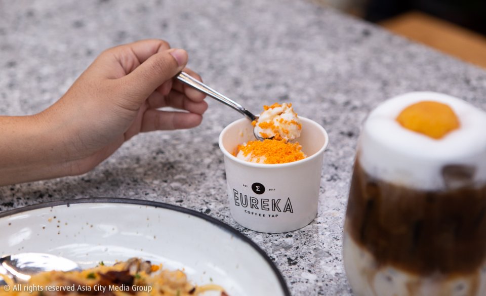 และสำหรับใครที่อยากลองของใหม่ ช่วงนี้ที่ยูเรก้าเพิ่งเปิดตัวเจ้า Matcha Baitoey Latte (160 บาท) เมนูลูกครึ่งระหว่างชาเขียวมัทฉะจากเมืองชิซุโอกะและใบเตยหอมจากนนทบุรี กับ Sakoo Cantaloupe Latte (160 บาท) ความลงตัวของแคนตาลูปออร์แกนิคจากสวนในอยุธยา ผสมไซรัปเมลอนทำเองและท็อปด้านบนด้วยเอสเพรสโซ่เมล็ดไทย