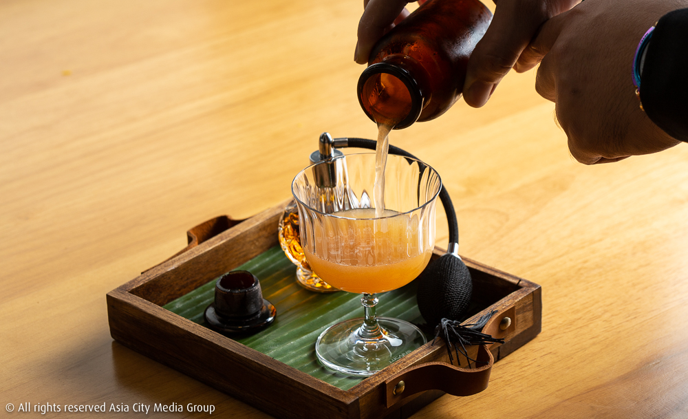 มาที่ฝั่งบาร์กันบ้าง บาร์ที่นี่จะใช้ส่วนผสมท้องถิ่นของไทยนำมาชงสไตล์อินเดีย เปิดมาด้วย Mehkong Whisky (380 บาท) ที่นำกล้วยมาซูวีด์กับวิสกี้ แล้วราดด้วยน้ำเชื่อมใบเตย โดยเขาจะมีขนมแกล้ม เพื่อดึงรสสัมผัสออกมาได้ทุกมิติ ถัดมากันที่ Meraki (380 บาท) ที่เบสวอดก้า เติมด้วยน้ำส้มยูสุและน้ำมะละกอ ดื่มง่าย อินเนอร์นางเอกมาก ๆ ส่วนแก้วสุดท้าย Gandhari (180 บาท) ม็อกเทลน้ำลิ้นจี่รสเบา ๆ ตัดด้วยรสเปรี้ยวของมะนาวอย่างลงตัว ท็อปด้วยความหอมของโฟมดอกจำปา ถือเป็นแก้วที่โดดเด่นมีชั้นเชิงดีจริง ๆ