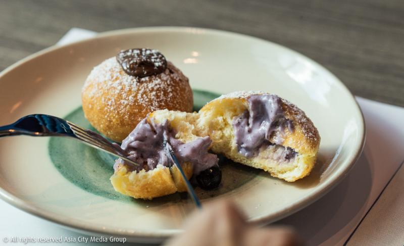 ฝั่งเมนูเนื้อและซีฟู้ดก็มีความน่าสนใจไม่แพ้กัน เราลองสั่ง Slow Cooked Crispy Skin Sucking Pig (690 บาท) ในสไตล์ Sadinian แท้ ๆ (เพราะเชฟก็มาจากที่เมืองนี้แหละ) ขาลูกหมูมาในขนาดกำลังดี เนื้อเปื่อยแบบใช้ส้อมจิ้มปุ๊บเนื้อยุ่ยปั๊บ ตรงนี้แหละที่ชอบ แต่ที่ชอบกว่าคือหนังหมูที่กรอบจริงอะไรจริง จิ้มกับซอสเกรวี่เช้ากันมาก ๆ แต่ส่วนตัวเราว่าถ้าซอสรสเข้มกว่านี้หน่อยน่าจะช่วยชูโรงได้ดี นอกจากนี้ยังมีของหวานที่เป็นซิกเนเจอร์ของ La Dotta อย่าง Bomboloni (240 บาท / 2 ชิ้น) ก็มีให้ลองชิมที่นี่เช่นกัน เลือกได้ทั้งไส้นูเทลลา ริคอตตากับน้ำผึ้ง บลูเบอร์รี่ชีสเค้ก ทิรามิตสุ และสตรอเบอร์รี่กับแชมเปญ แม้จะรอนานหน่อยเพราะเขาทอดทีละชิ้นตามออเดอร์ แต่ก็คุ้มที่รอ เพราะอร่อยแบบร้อน ๆ นี่แหละที่เราต้องการ