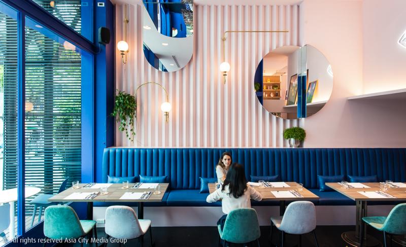 คำว่า La Grassa คือชื่อเล่นของเมืองโบโลญญ่า ประเทศอิตาลี เมืองที่โดดเด่นเรื่องอาหาร (โดยเฉพาะพาสต้า) นั่นเอง ร้านสาขานี้มีดีไซน์ที่โดดเด่นด้วยสีสันเจ็บจี๊ดเหมือนเดิม เพิ่มเติมด้วยความสมมาตรของทางร้านสไตล์เวส แอนเดอร์สัน การเลือกใช้โทนสีน้ำเงิน-ชมพูพาสเทลคู่กันเป็นอะไรที่ขัดกันแต่ลงตัวมาก ๆ ยิ่งมีกราฟิกโมเดิร์น ๆ ที่เป็นไอคอนเส้นพาสต้า conchiglie และวลีเก๋ ๆ ในสไตล์นีออนดัด ก็ยิ่งช่วยเพิ่มสีสันให้กับร้านได้เยอะเลยทีเดียว แอบรู้มาว่าการตกแต่งของร้านนี่มาจากไอเดียของคุณโชติพงษ์เองด้วยนะ