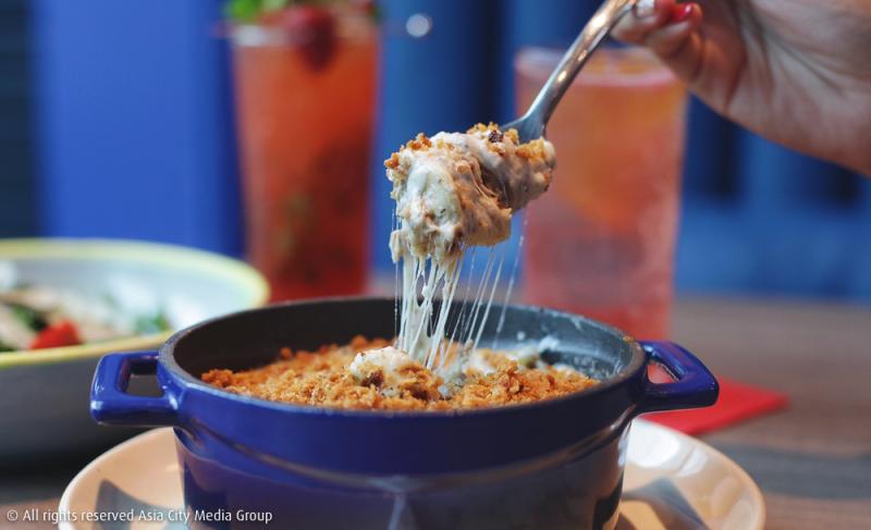 นอกจากนี้ที่สาขานี้ยังมีเมนูหมวด Chef's Twist ซึ่งเป็นส่วนเมนูที่จับเอาเชฟทั้ง 3 คนที่ช่วยคิดเมนูของร้าน (เชฟลูก้า เชฟฟรานเซสโก และเชฟลีซาน จาก Il Fumo ก็มาร่วมด้วย) ใหม่ ๆ มาให้เราได้ลองชิมกัน ซึ่งแต่ละเมนูก็น่าลองเอามาก ๆ เช่น เมนูตับห่านกับเห็ดป่า หรือจะเป็นสปาเกตตี้ไข่หอยเม่น แต่ที่เราเลือกลองชิมคือ Wagyu Mac & Cheese (540 บาท) แมคแอนด์ชีสที่เลือกใช้เส้น Conchiglie ไอคอนของทางร้านมาเจอกับเนื้อออสเตรเลียนวากิว, มอสซาเรลลานมวัว นำไปอบและกริลล์อีกรอบ จานนี้แน่น ๆ เราว่าเหมาะกับแบ่งกินกัน 2 มากกว่า แต่รสชาติดีมาก ไม่เลี่ยนเลย กินได้เรื่อย ๆ เพลิน ๆ