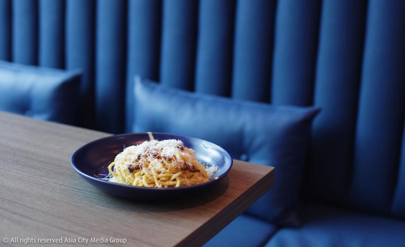 สำหรับสาขานี้เขาบอกว่าตัวเองเป็นร้านอาหารอิตาเลียนแบบครบครัน แม้จะยังมีเมนูพาสต้าเป็นตัวน้ำอยู่ แต่ก็มีเมนูอิตาเลียนอื่น ๆ พร้อมเสิร์ฟเช่นกัน ทั้งเมนูเนื้อ ซีฟู้ด หรือกระทั่งของหวานและค็อกเทลให้ดื่มกันก็มี ที่นี่เขาได้เฮดเชฟอย่าง Luca Capitanio และเชฟพาร์ตเนอร์ Francesso Deiana มาช่วยกันครีเอทเมนูใหม่ ๆ สำหรับที่นี่ให้เราได้ลองกัน เริ่มจากจานพาสต้าเมนูคลาสสิคอย่าง Cabonara in Original Roman Style (390 บาท) ที่ต้องบอกว่าไม่ธรรมดาตั้งแต่เส้นพาสต้าแล้ว เพราะที่สาขานี้เขาอิมพอร์ตเครื่องทำพาสต้าเส้นสดราคาแรงมาใช้ที่ร้าน แต่รับรองว่าเส้นที่ได้นั้นเยี่ยมยอดมาก ๆ เส้นพาสต้าทุกแบบเป็นเส้นสดทั้งหมด (ยกเว้นลิงกวินี) เส้นที่ได้จึงนุ่ม เหนียว และอร่อย คาโบนาราจานนี้เราเลือกเส้น Bucatini ผัดกับเนื้อแก้มหมูรมควัน, Pecorino Romano และไข่แดงข้น ๆ ใครชอบเค้ม ๆ มัน ๆ ต้องจานนี้เลย รับรองว่าไม่เสียใจแน่