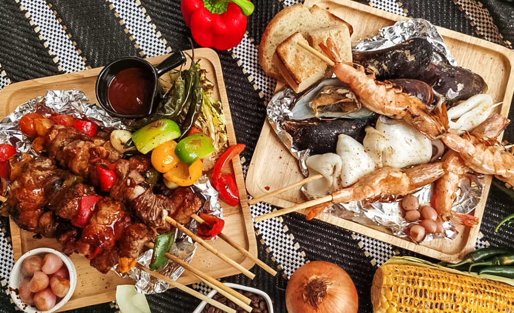 สำหรับ Backyard Barbecue ชุดใหญ่ Set a Fire ประกอบไปด้วยบาร์บีคิว 5 อย่าง (เนื้อ หมู ซีฟู้ด - มีริบอาย) พร้อมผักย่างและซอสสูตรพิเศษ ในราคา 799 บาท ส่วนชุดเล็ก Bite & Beer เป็นบาร์บีคิว 2 อย่าง (เนื้อ หมู ซีฟู้ด - ไม่มีริบอาย) พร้อมเครื่องดื่ม (ดราฟต์อาซาฮี) ในราคา 300 บาท หรือจะเลือกสั่งเป็นอย่าง ๆ ก็ไม่ผิด เพราะราคาก็ยังคุ้มเหมือนเดิม เริ่มต้นที่ไม้ละ 120 - 185 บาท