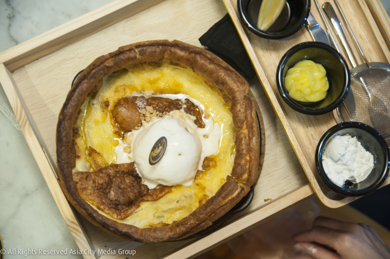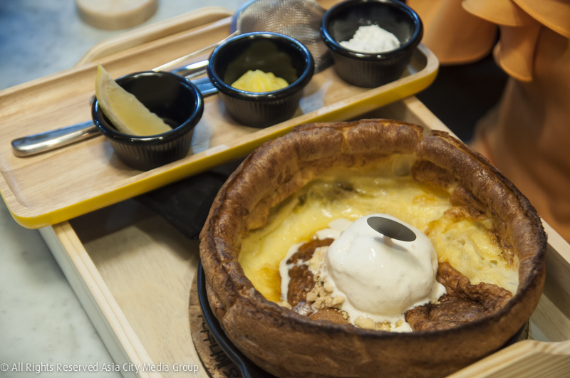 ขนมที่ทำเอาหลายคนว้าว และเป็นซิกเนเจอร์ของร้านเห็นจะเป็น Dutch Baby ขนมชิ้นใหญ่ที่นำแป้งแพนเค้กไปอบจนฟูใหญ่เท่าชามไซส์ยักษ์ ก่อนจะนำมาตกแต่งด้วยท็อปปิ้งแบบต่างๆ เช่น Tangy Yuja Marmalade Dutch Baby (245 บาท) ที่ตกแต่งด้วยส้มเชื่อม ให้รสหวานอมเปรี้ยว หรือจะเป็น Korean Banana Milky Way Dutch Baby (245 บาท) ที่เสิร์ฟกล้วยพร้อมซอสนมกล้วยเกาหลี และไอศกรีมวนิลา