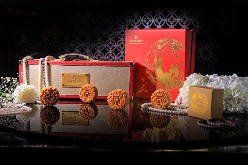 ต่อด้วยขนมมูนเค้กจากโรงแรม โรงแรมเรเนซองส์ กรุงเทพฯ ที่คัดสรรค์วัตถุดิบชั้นดีมีให้เลือก 4 รสชาติด้วยกัน เริ่มด้วยไส้ทุเรียน-ไข่แดง ที่เนื้อสัมผัสนุ่มหอมละมุนของทุเรียนหมอนทองเข้ากันได้ดีกับรสชาติกลมกล่อมของไข่แดง และละมุนกับไส้ลูกบัวหอม-ไข่แดงที่ความหอมและคุณประโยชน์ของเม็ดบัวแบบเต็ม ๆ ตามด้วยไส้งาดำ-ไข่แดง ที่สัมผัสกรุบกรอบของงาดำเข้ากันได้ดีกับรสชาติเค็มมันของเนื้อไข่แดงได้อย่างลงตัว และสำหรับใครที่รักคัสตาร์ดที่นี่ก็มีรสชาติยอดนิยมอย่างไส้คัสตาร์ดอีกด้วย มีแพคเก็จให้เลือก 2 แบบ คือ Prestigious Golden กล่องทองหรูบุหนัง และ Imperial Red กล่องหนังสีแดงทองลายพระจันทร์มงคล เหมาะสำหรับซื้อเป็นของฝากในเทศกาลมงคลสุด ๆ