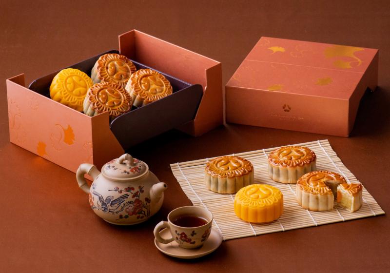 ขนมไหว้พระจันทร์สำหรับฉลองเทศกาลไหว้พระจันทร์สูตรต้นตำรับชิ้นใหญ่จาก โรงแรม ดิ โอกุระ เพรสทีจ กรุงเทพฯ กับรสชาติอันเป็นเอกลักษณ์ แป้งบางนุ่ม ไส้เนียน เนื้อแน่น มี 4 รสชาติ ให้ได้เลือกชิมกันแบบเต็มพุง ได้แก่ ไส้ชาเขียว ไส้ยอดนิยมที่มีความหอมของชาเขียวหวานกำลังพอดี ไส้คัสตาร์ด ไส้ทุเรียนไข่เดี่ยว และไส้พุทราไข่เดี่ยว ในส่วนขนมไหว้พระจันทร์ชิ้นใหญ่ 4 ชิ้น 4 รสชาติ จะถูกบรรจุในกล่องดีไซน์พิเศษสีทองแดงและสีน้ำตาล ตกแต่งลวดลายหน้ากล่องด้วยใบกิงโกะ (Gingo) หรือใบแปะก๊วยสีทองแดง หรูสุดอะไรสุด!