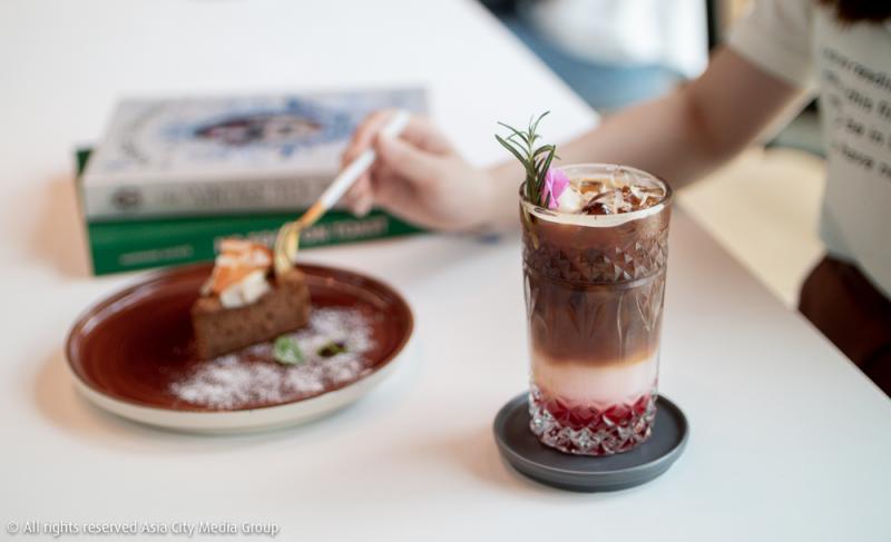 และสำหรับเมนูที่เป็น Non-Coffee ทางร้านก็มีให้เลือกเช่นเดียวกัน แต่ละเมนูเรียกได้ว่าน่าชิมทั้งนั้นเลย ไม่ว่าจะเป็น The Nut Job (90 บาท) ที่นำเอาโกโก้เกรดเบเกอรี่มารังสรรค์ให้เป็นเครื่องดื่มที่ไม่มีน้ำตาลผสมเลย แต่มีซอสเฮเซลนัท ได้ความเข้มข้นเต็ม ๆ และอีกหนึ่งเมนูที่ทางร้านแนะนำก็คือ Little My Sunshine (120 บาท) เครื่องดื่มที่ประกอบไปด้วยน้ำเสาวรสคั้นสด โซดา ชาพีช และ Orange Blood ที่ทางร้านทำเอง เติมความสดชื่น ท็อปด้วยเสาวรสฝานและโรสแมรี่ที่เบิร์นนิดหน่อยเพื่อให้น้ำมันระเหยออกมา ส่งกลิ่นหอมยิ่งขึ้น รสชาติจะมีความเปรี้ยวหวานผสมกับความซ่า สดชื่นมาก
