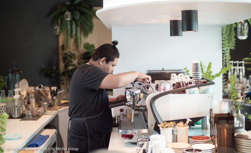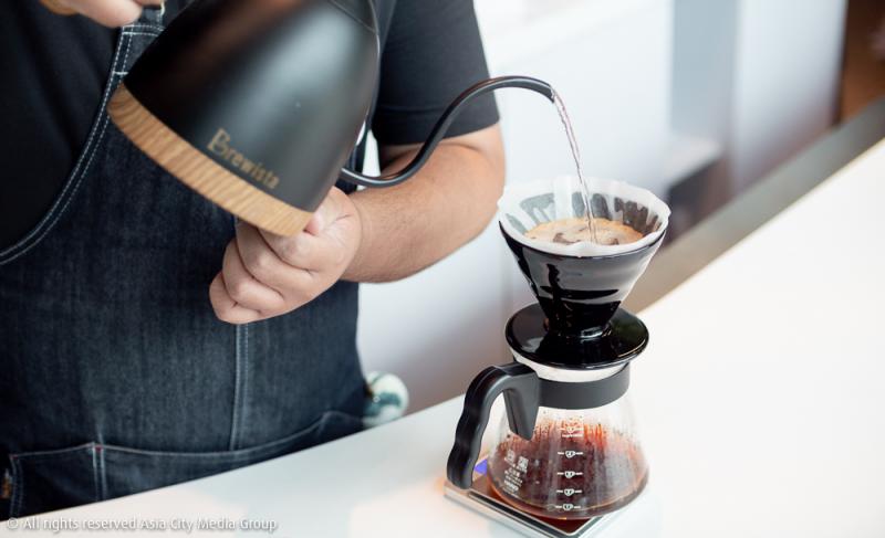 ในส่วนของ Filter Coffee ที่ร้านตอนนี้จะมีกาแฟดริป โดยเขาจะใช้ของ La Cabra เป็นโรงคั่วของเดนมาร์ก ซึ่งหาทานได้ยาก ความพิเศษของที่นี่คือโรงคั่วนี้สามารถนำเมล็ดกาแฟคั่วอ่อนมาทำเป็น Espresso หรือ Filter Coffee ได้อย่างมีประสิทธิภาพ และอย่างตัวที่เราได้ลองวันนี้เป็น Teshume และ Ethiopia ที่ให้รสสัมผัสแบบพีช น้ำผึ้ง และชาดำ