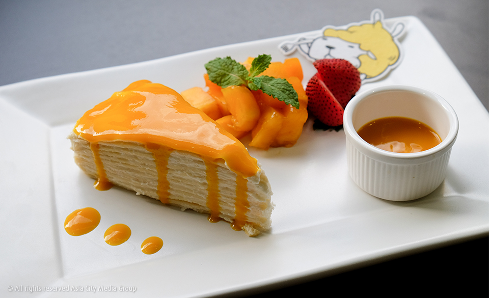 โดยปกติที่ร้านจะมี Kiosk Cafe ให้บริการเบเกอรี่รองท้อง แต่เราขอพูดถึงเมนูพิเศษที่เพิ่มเข้ามาในช่วง Eat All Day Cafe กันเลยดีกว่า เราชอบ Mille Crepe Mango Flood (180 บาท) เครปเค้กเนื้อละเอียดราดซอสมะม่วง เสิร์ฟพร้อมสตรอว์เบอร์รี่และมะม่วงสุกหั่นเต๋า สำหรับคนที่ชอบรสเปรี้ยวจัดเราแนะนำว่าให้ราดซอสมะม่วงให้หมดจนหยดสุดท้ายไปเลยจ้า