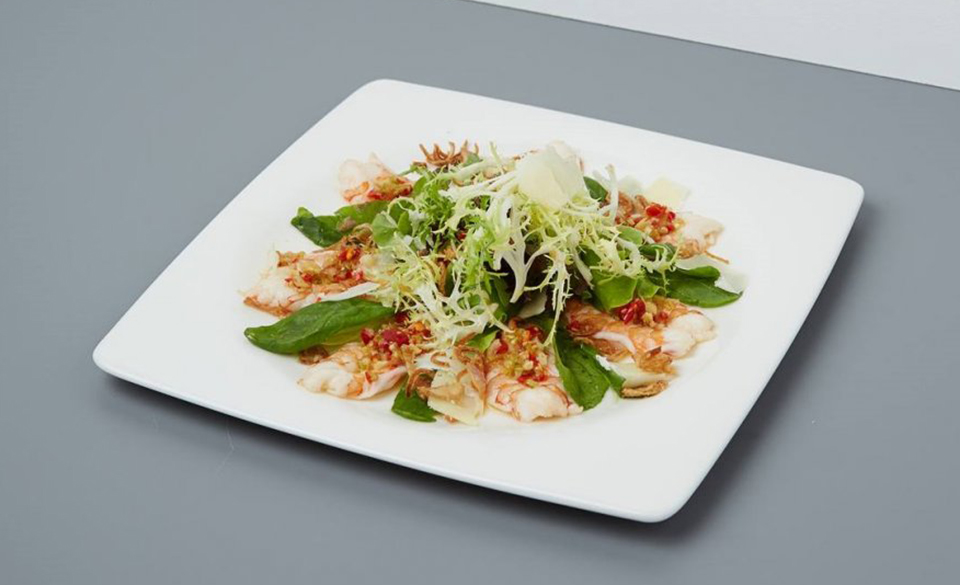 สำหรับอาหารยังคงความเบสิคแต่แอบมีลูกเล่นให้ประหลาดใจเช่นเดิมตามสไตล์ Greyhound ไม่ว่าจะเป็น Spicy Prawn Carpaccio Salad (250 บาท) สลัดคาร์ปาชิโอกุ้งราดน้ำยำแบบไทย โรยหน้าด้วยพาเมซานชีสอีกที