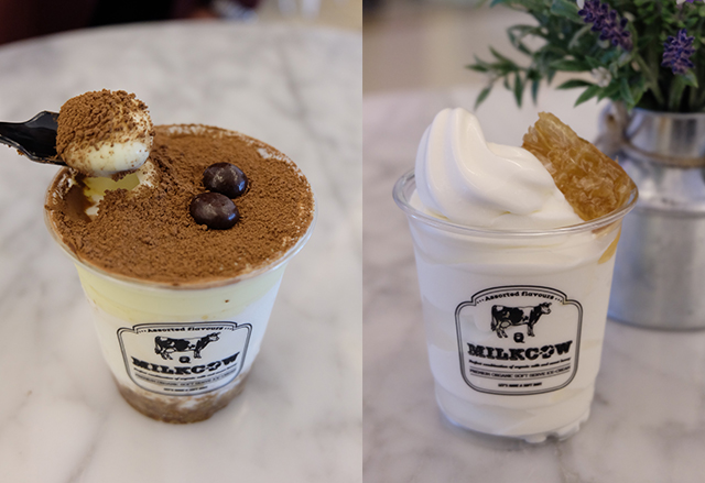 ร้านไอศครีมซอฟท์เสิร์ฟออร์แกนิคจากเกาหลีแห่งนี้ ฮิตเป็นพลุแตกที่ประเทศเกาหลี ด้วยเมนูซิกเนเจอร์อย่าง Milky Cube ไอศกรีมซอฟต์เสิร์ฟคู่กับรังผึ้ง ราดน้ำผึ้งออร์แกนิคหอมๆ (แก้ว 159 บาท / โคน 169 บาท) ที่บอกเลยว่าลงตัวสุดๆ ส่วนคนรักกาแฟ ต้องสั่งทีรามิสุท็อปด้วยมาสคาโปเน่ชีสหอมมัน กับเมล็ดกาแฟและผงช็อกโกแลต (159 บาท) หรือจะลองเป็นอะไรฟรุ้งฟริ้งอย่าง Milky Rainbow เค้กนุ่มๆ สีสายรุ้งพาสเทล (185 บาท) ก็คิวท์ไปอีกแบบ
