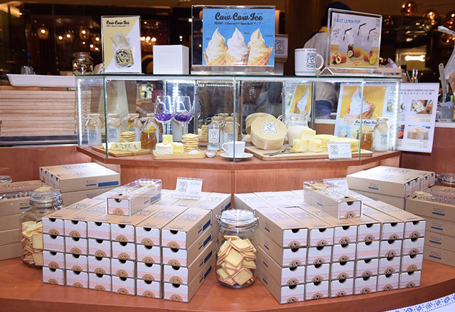 รู้รึเปล่าว่า นอกจากชาชีสแล้ว ยังมีอีกหนึ่งเรื่องน่ายินดีสำหรับบรรดาชีสเลิฟเวอร์ เพราะ Tokyo Milk Cheese Factory ร้านชีสพรีเมียมจากแดนอาทิตย์อุทัยซึ่งมีเมนูขึ้นชื่ออย่าง Salt & Camembert Cheese cookies (ไซส์ S 430 บาท/ไซส์ L 790 บาท) คุ้กกี้รสเกลือเกอรองด์และชีสกามองแบร์ สอดไส้ชีสนุ่มๆ ที่ดีงามจนขึ้นแท่นของฝากยอดฮิตจากโตเกียว ได้ขยับขยายสาขามาเปิดตัวในไทยอย่างเป็นทางการแล้ว นอกจากนี้ ที่ร้านยังมีซอฟต์เสิร์ฟรสชีส (155 บาท) ที่ทำจากนมฮอกไกโดสดๆ มาให้สายหวานกินกันแบบลืมนับแคลเลยล่ะ