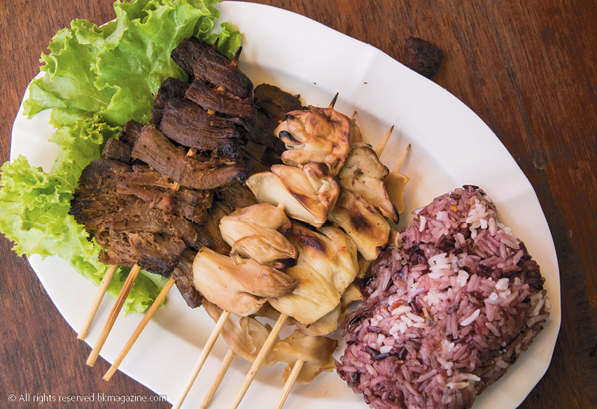 บ้านสวนไผ่สุขภาพ คือแหล่งรวมอาหารมังสวิรัติราคาน่าคบหา รสชาติดี และบรรยากาศร่มรื่น เหมาะสุดๆ สำหรับเทศการเจปีนี้ เมนูที่เราอยากให้ลองก็คือ หมูปิ้งมังสวิรัติ ที่ใช้เห็ดชิตาเกะเสียบไม้ย่างแบบไม่ปรุงแต่งใดๆ จับคู่กับข้าวเหนียวหุงตะไคร้สับละเอียด อร่อยได้ง่ายๆ ไม่ต้องง้อเนื้อสัตว์เลย