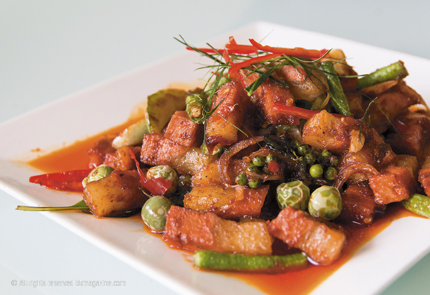 หมูป่าผัดเผ็ดจานนี้ใช้บุกและโปรตีนเกษตรนำเข้าจากมาเลเซียแทนเนื้อหมูป่า แต่รสชาติก็ไม่ได้แพ้เนื้อหมูจริงเลย ถือว่าเป็นอาหารจานเด็ดของ Loving Hut ร้านอาหารเจจริงจังที่เสิร์ฟทั้งอาหารไทย จีน และตะวันตก หรือจะเป็นเมนูสไตล์ญี่ปุ่นอย่างซาซิมิ ซูชิ หรือชุดคตซึก็ยังมี ตอนนี้มีอาหารเวียดนามเพิ่มเข้ามาด้วย จะแวะไปกี่ครั้งก็เลือกกินได้ไม่ซ้ำเมนู