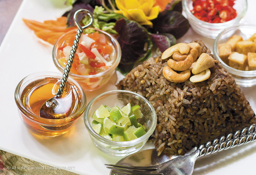 ห้องอาหารมังสวิรัติแห่ง AriyasomVilla Luxury Boutique Hotel Bangkok นี้มีทั้งอาหารไทยและตะวันตก เมนูเด็ดน่าลองก็คือข้าวผัดหนำเลี๊ยบเพื่อสุขภาพ เสิร์ฟพร้อมเต้าหู้ย่าง ผัดรวม ตัดความเค็มของหนำเลี๊ยบด้วยน้ำมันมะกอกและมะนาว รวมถึงยำส้มโอ หมี่กรอบ ต้มโคล้ง และน้ำพริกอ่องก็น่าโดนไม่แพ้กัน บอกเลยว่าการกินเจไม่ได้น่าเบื่ออย่างที่คิดหรอกนะ ;)